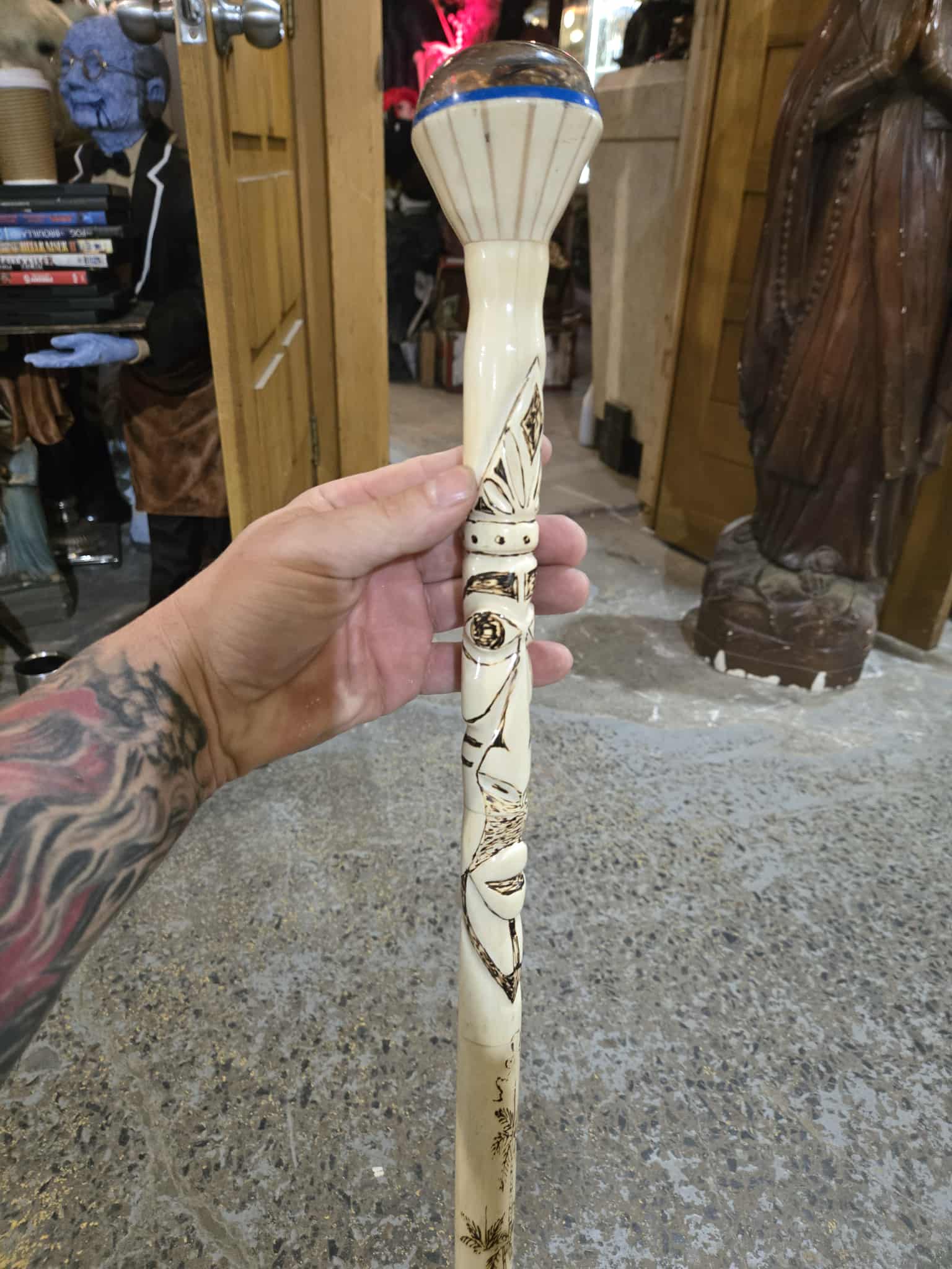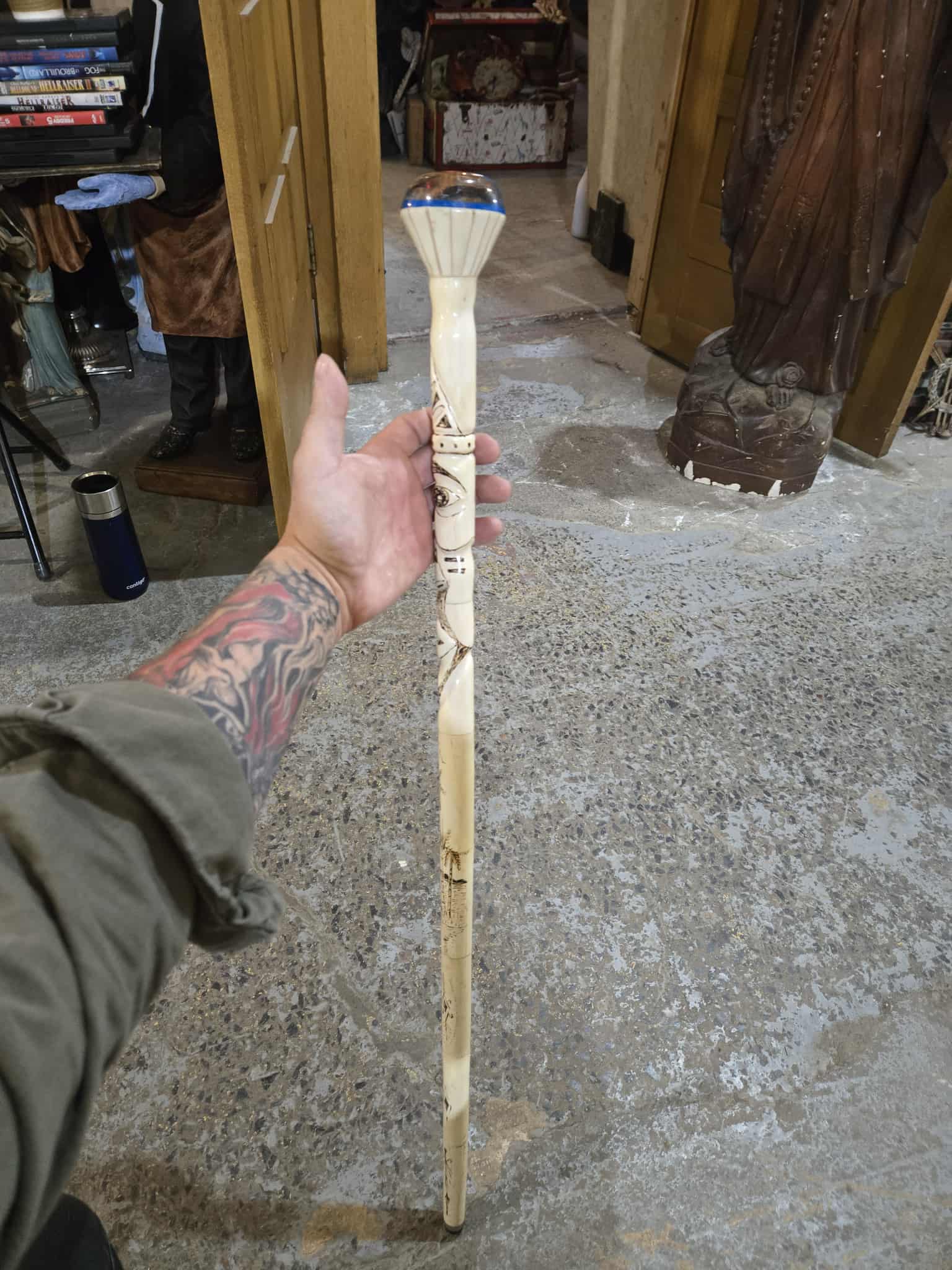 Canne sculptée dans des os, avec un scorpion au pommeau.
