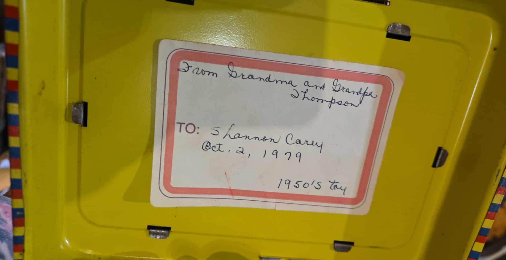 Clown trapèze jouet en métal musical antique Mattel. "A Mattel music metal toy" des années 1950, donné en cadeau le 2 octobre 1979.