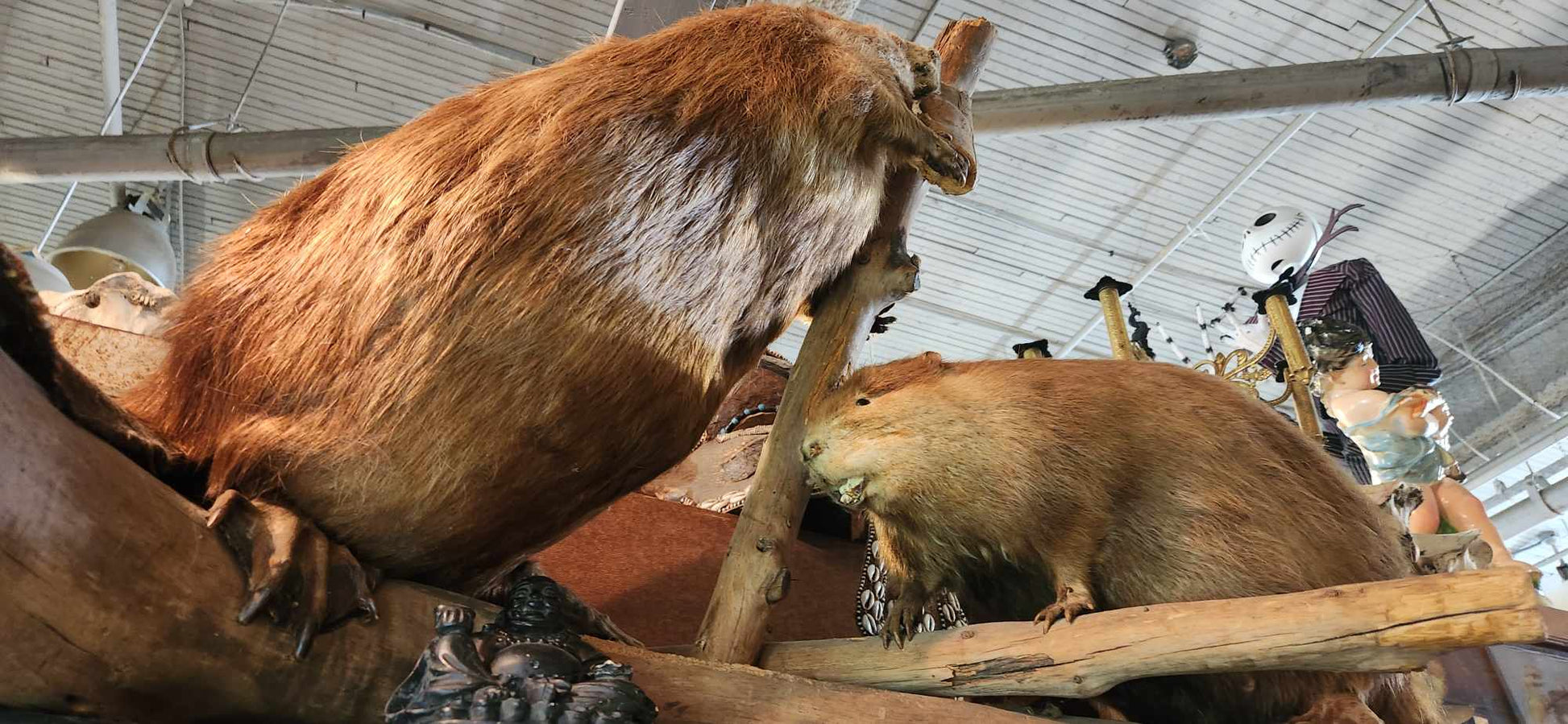 Deux castors empaillés.
