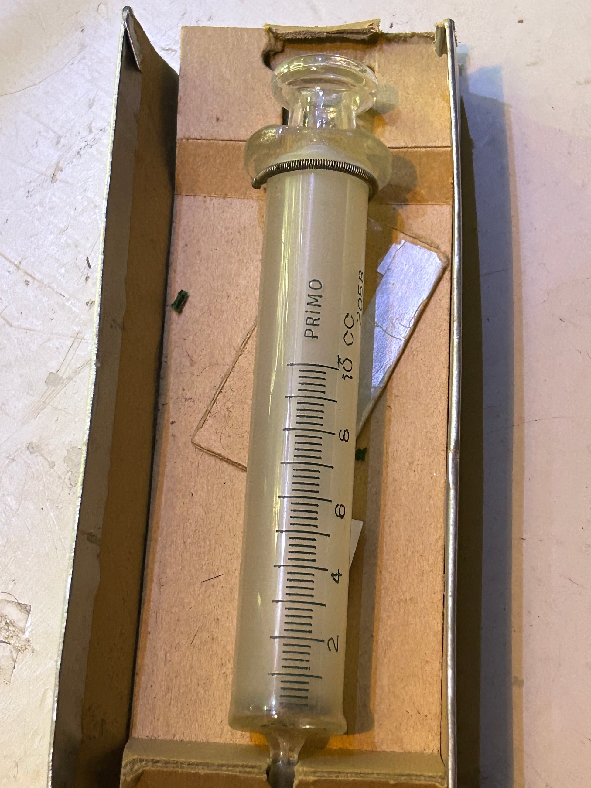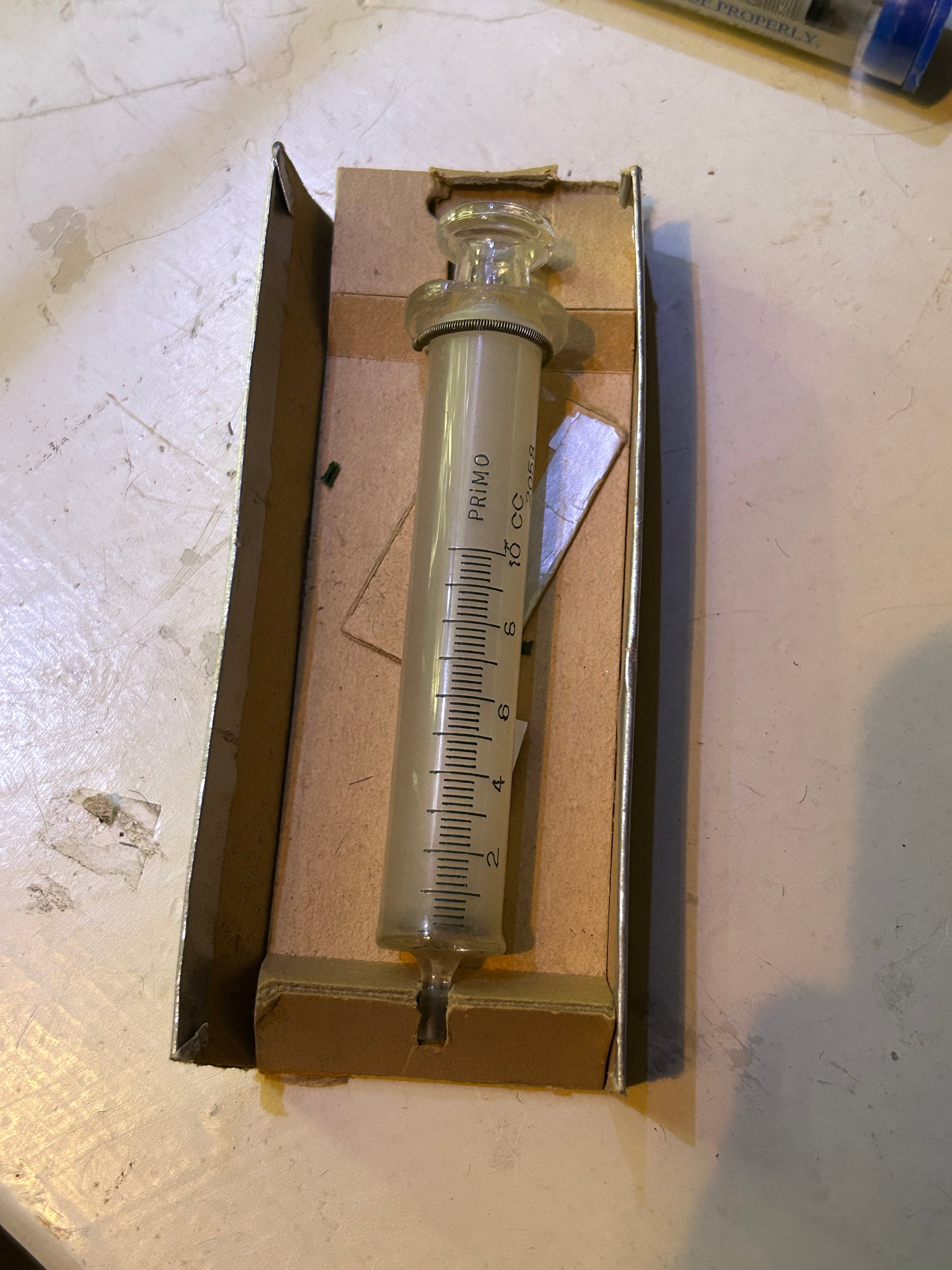 Grande seringue antique en verre, sans aiguille