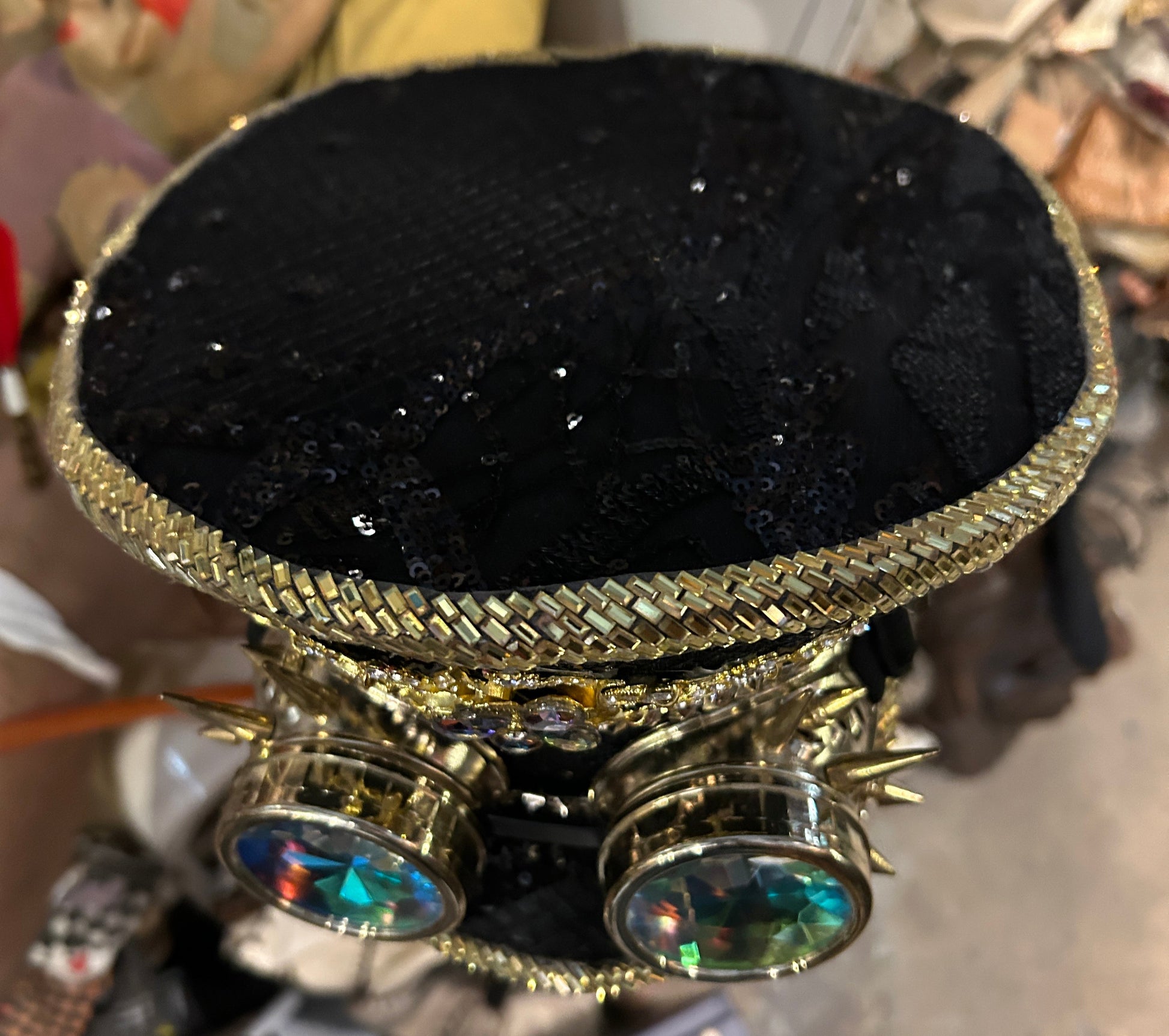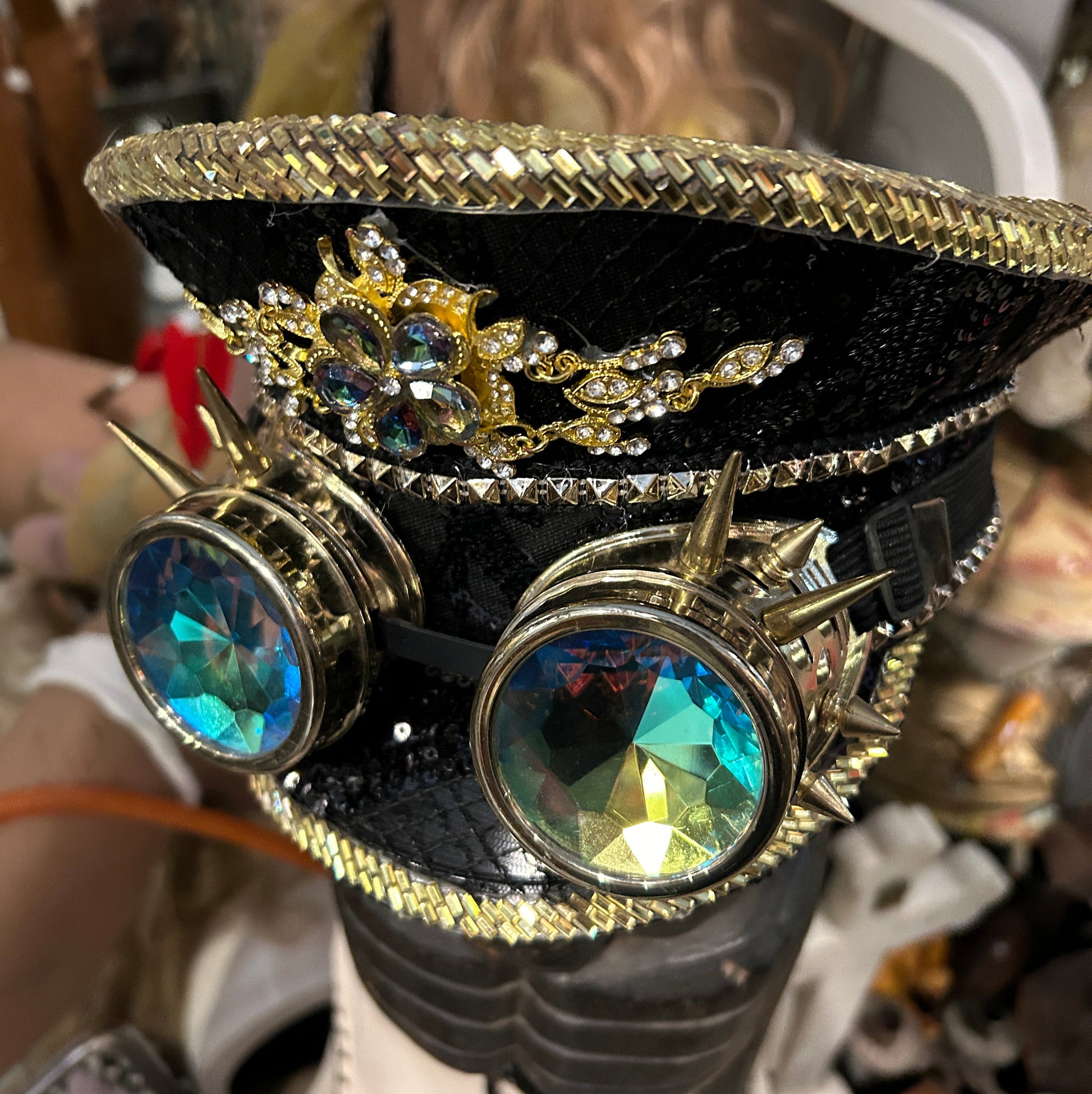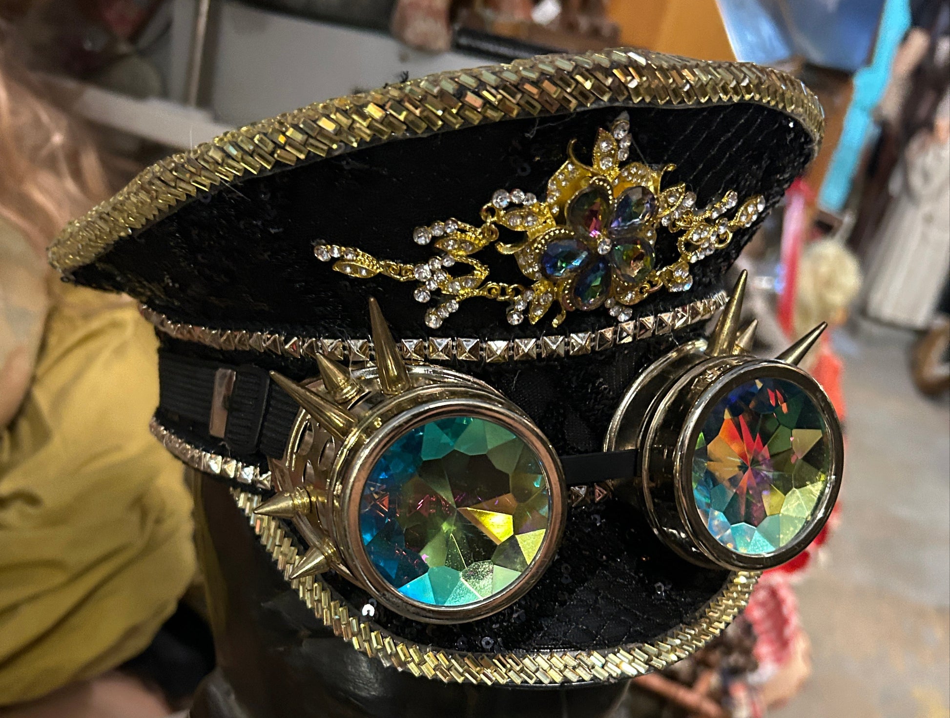 Képi à paillettes avec lunettes kaléidoscope steampunk