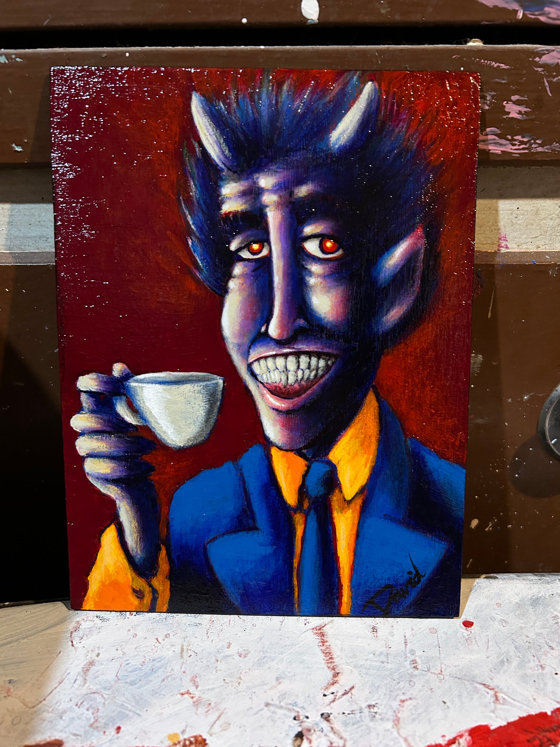 Peinture originale 6X8 "Un vendeur de rêves" par David Therrien
