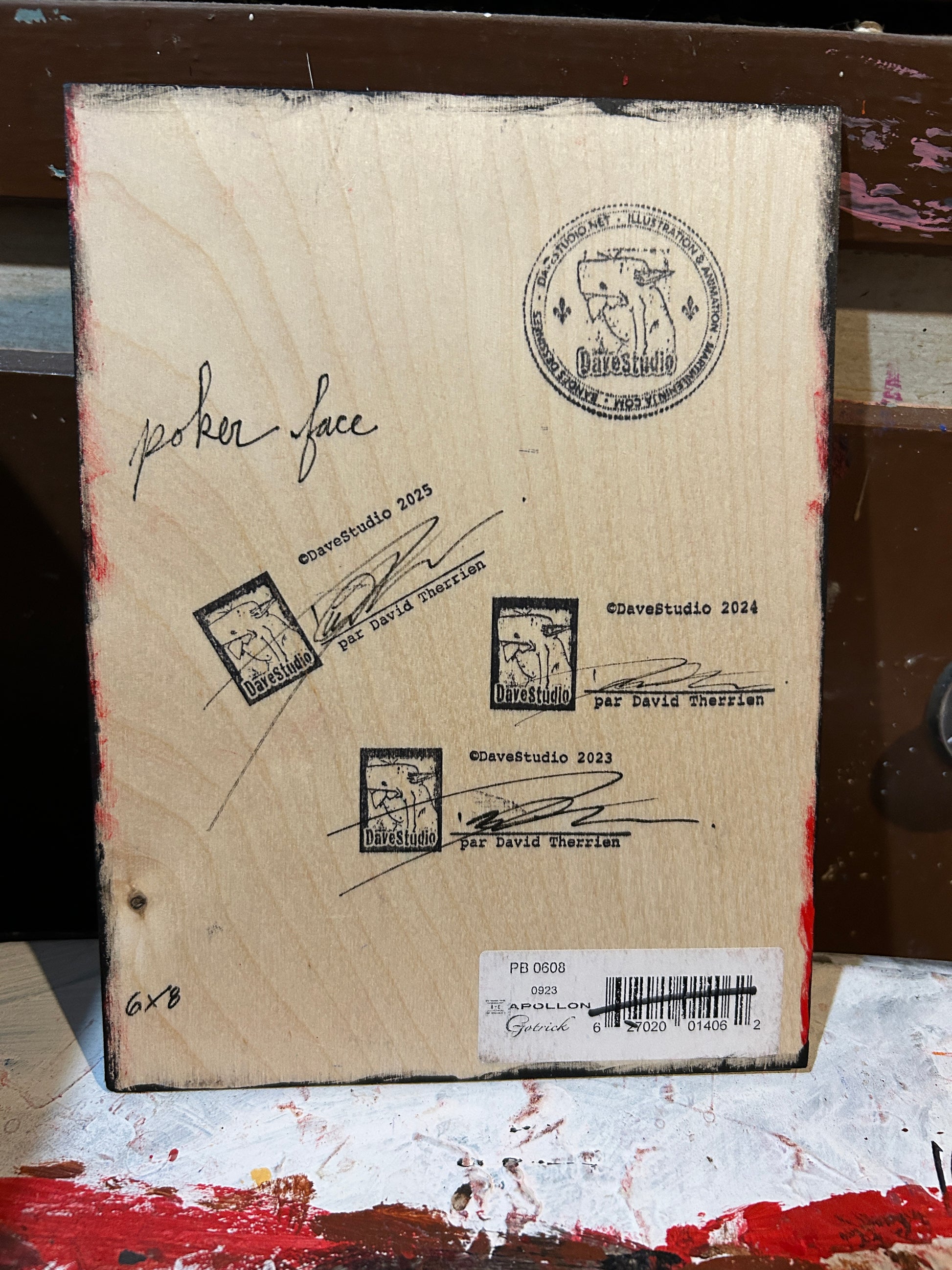 Peinture originale "Poker face", sur panneau Gotrick 6X8, par David Therrien.