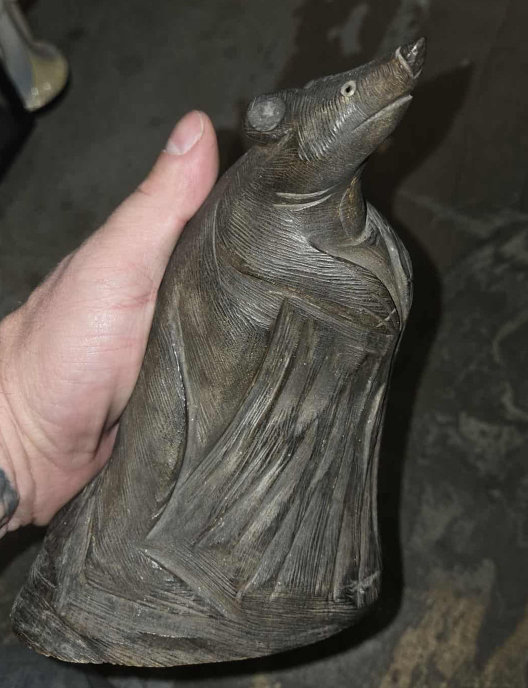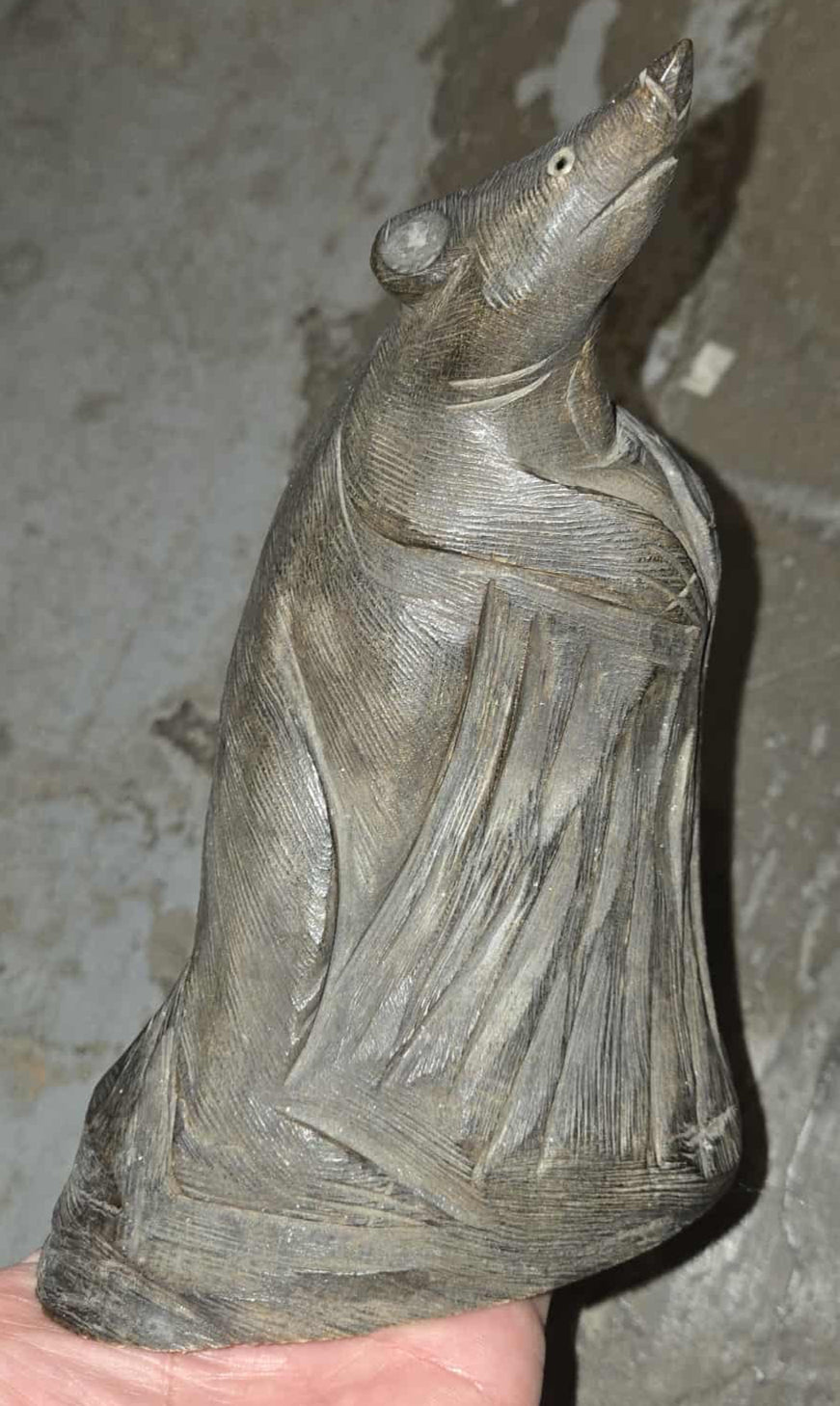 Sculpture d'un ours sculpté dans une corne de buffle d'eau.