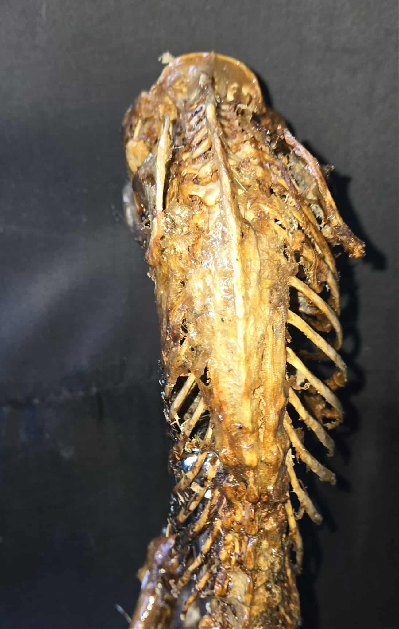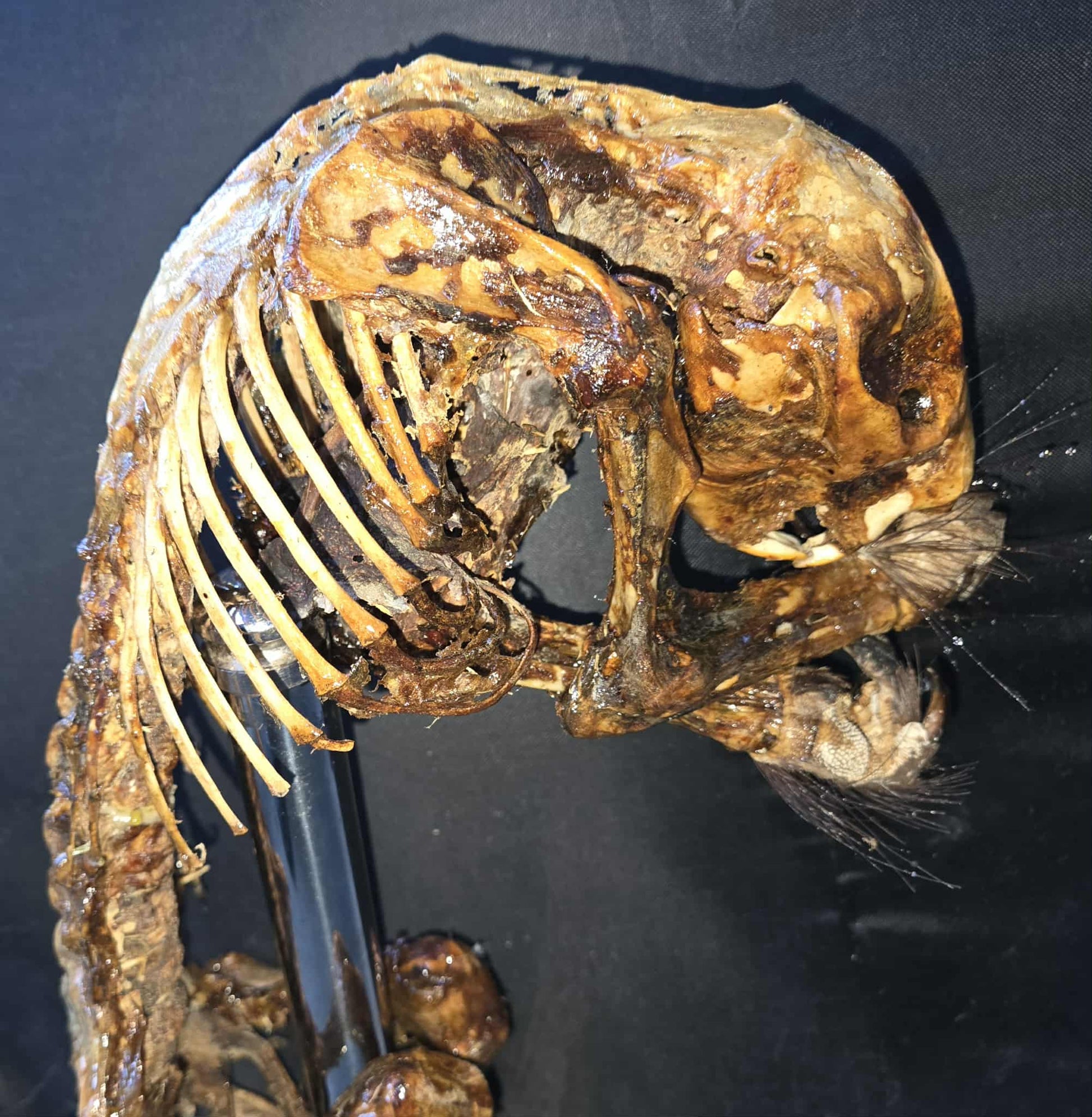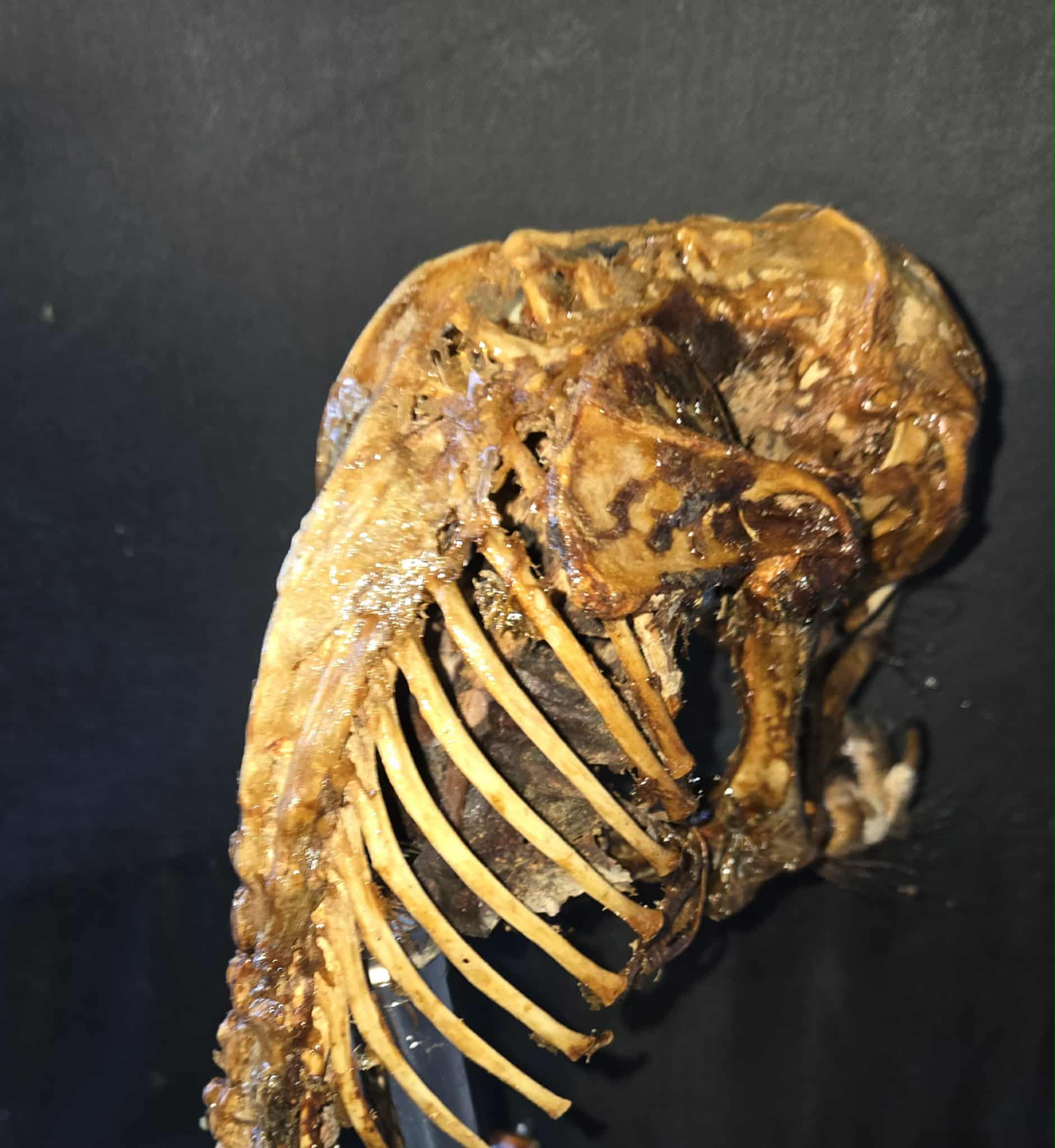 naturalisé et momifié dans le sel, sous le soleil des Laurentides, infusé au formol et enduit d'epoxy. Sur socle de métal.