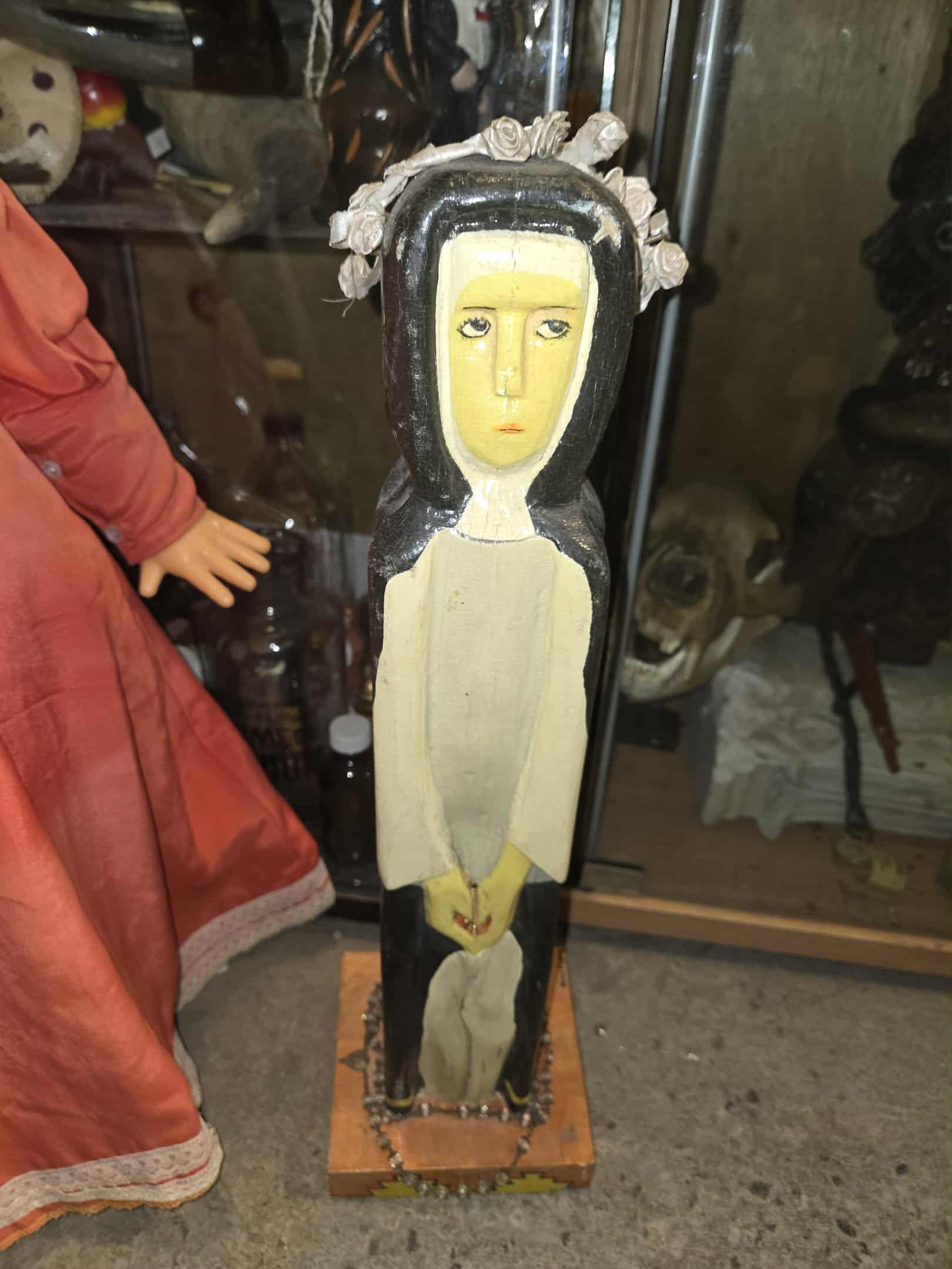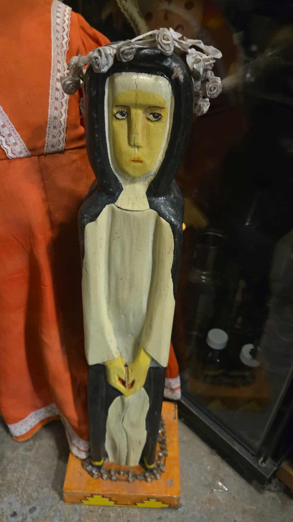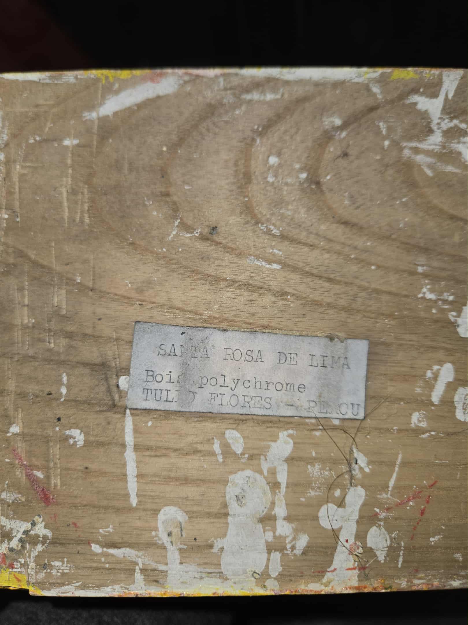 Statue antique sculptée en bois de Santa Rosa de Lima du Péru.