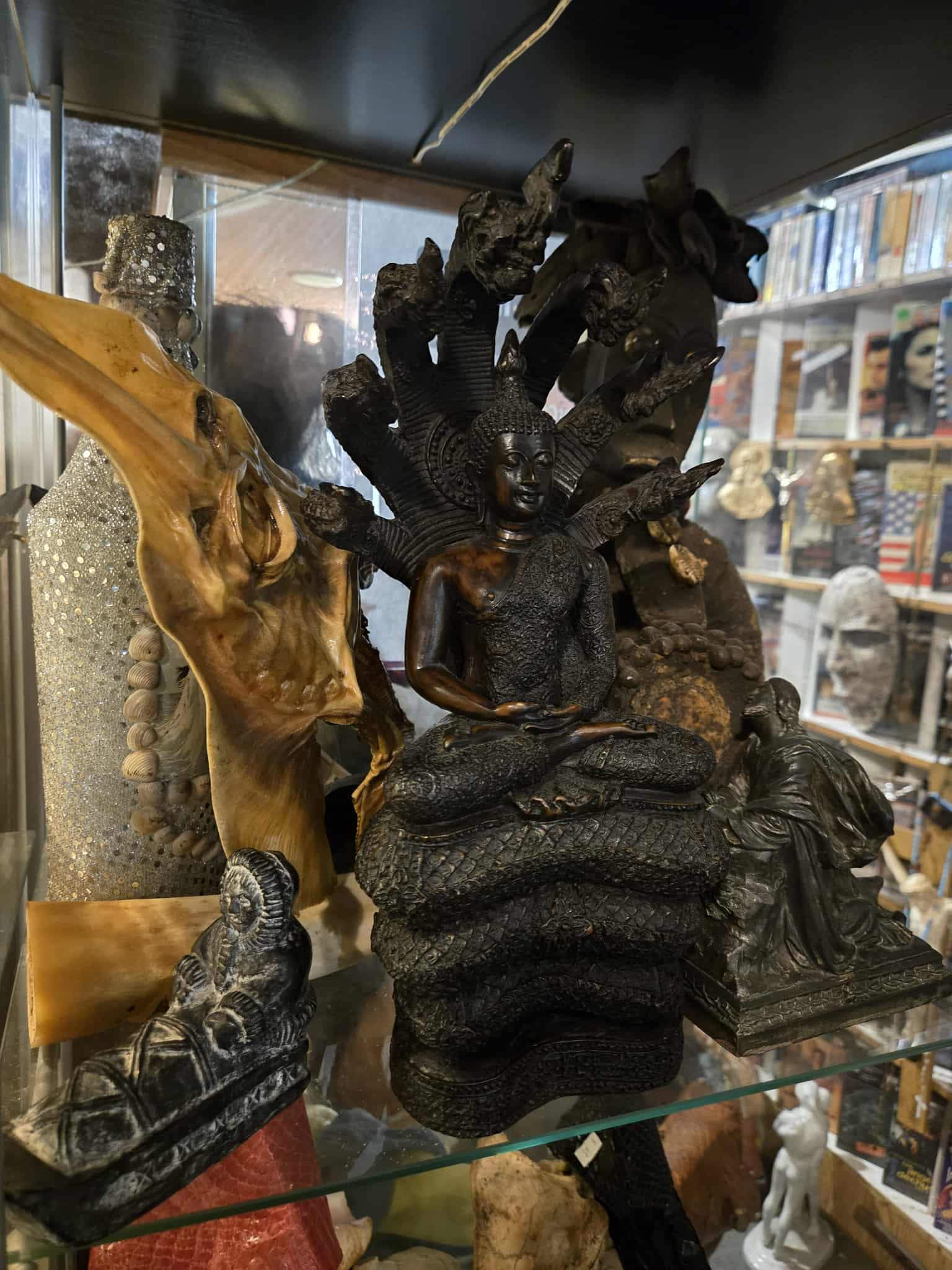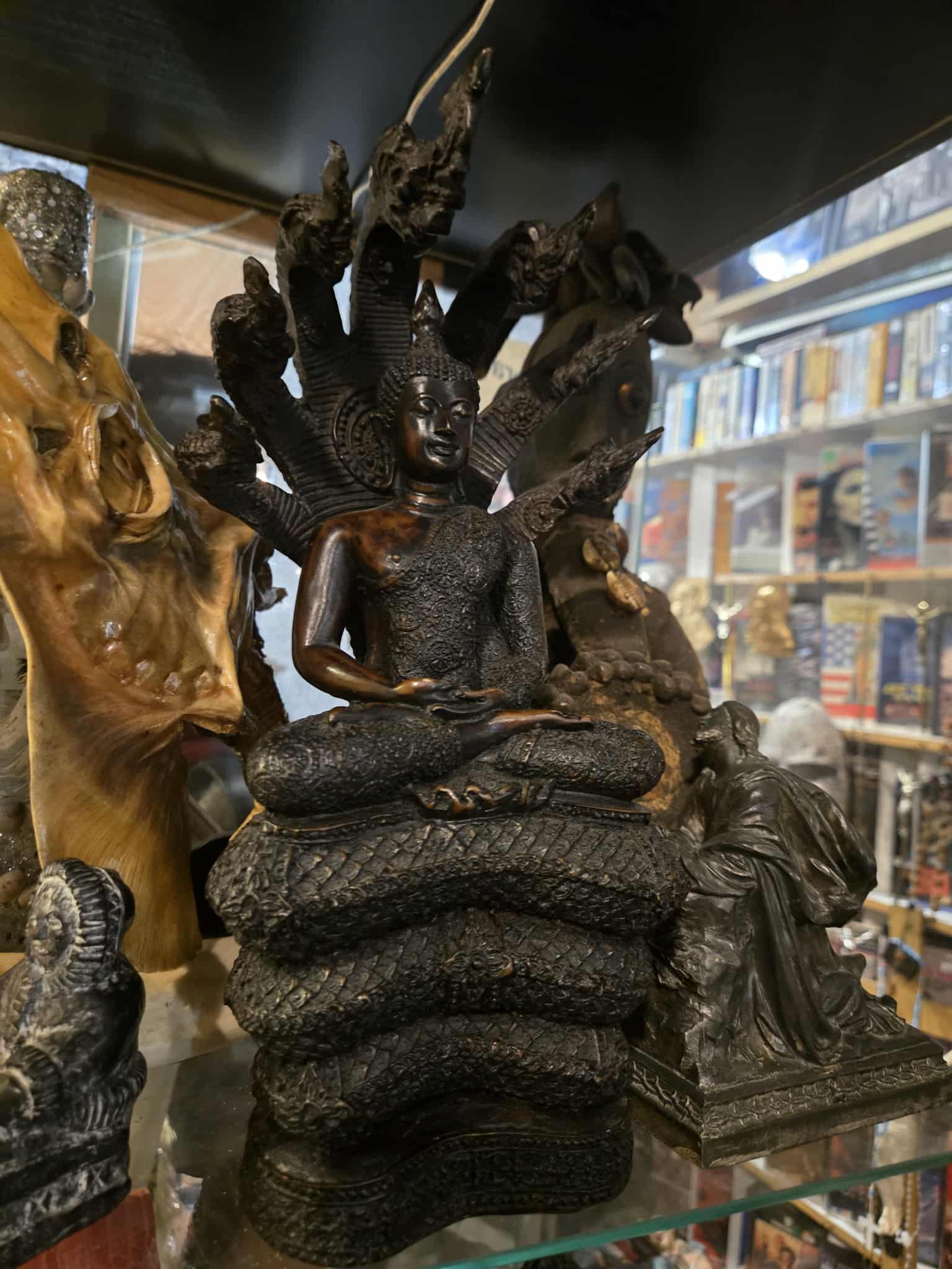 Statue Bouddha thaïlandais méditant avec 7 serpents au-dessus de sa tête.