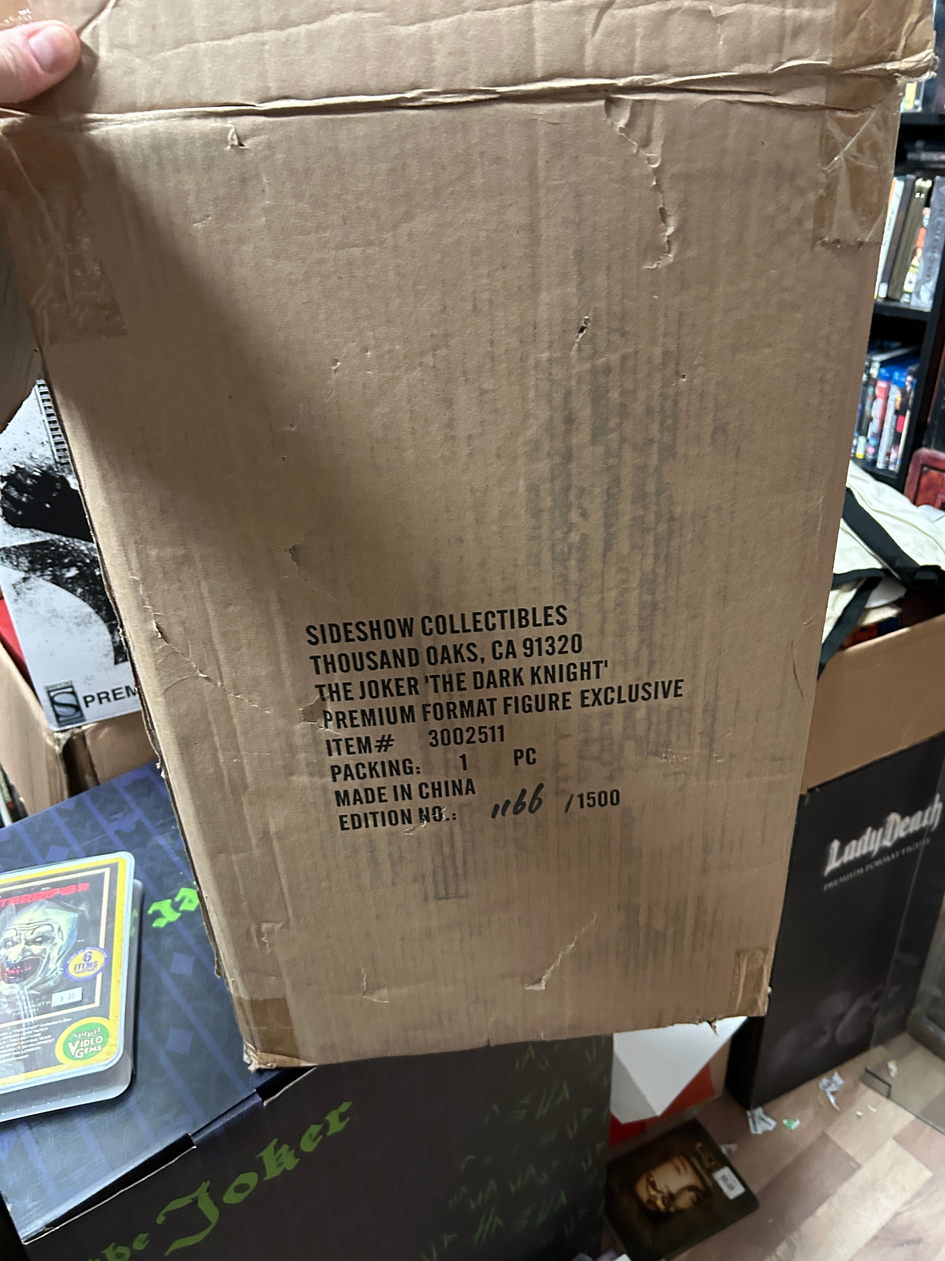 Statue The Joker "The Dark knight" Premium Format Exclusive par Sideshow Collectables. Édition limitée. Objet de collection. Vient avec son emballage d'origine et sa boite mailer d'origine. No. 1166 de 1500. Déballée et mise en display qu'une seule fois.